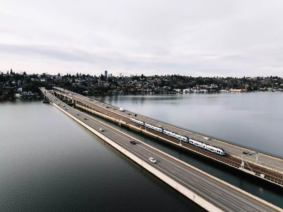 The new line, delivered by Sound Transit, introduces a global first: light rail service operating across a floating bridge on Lake Washington.