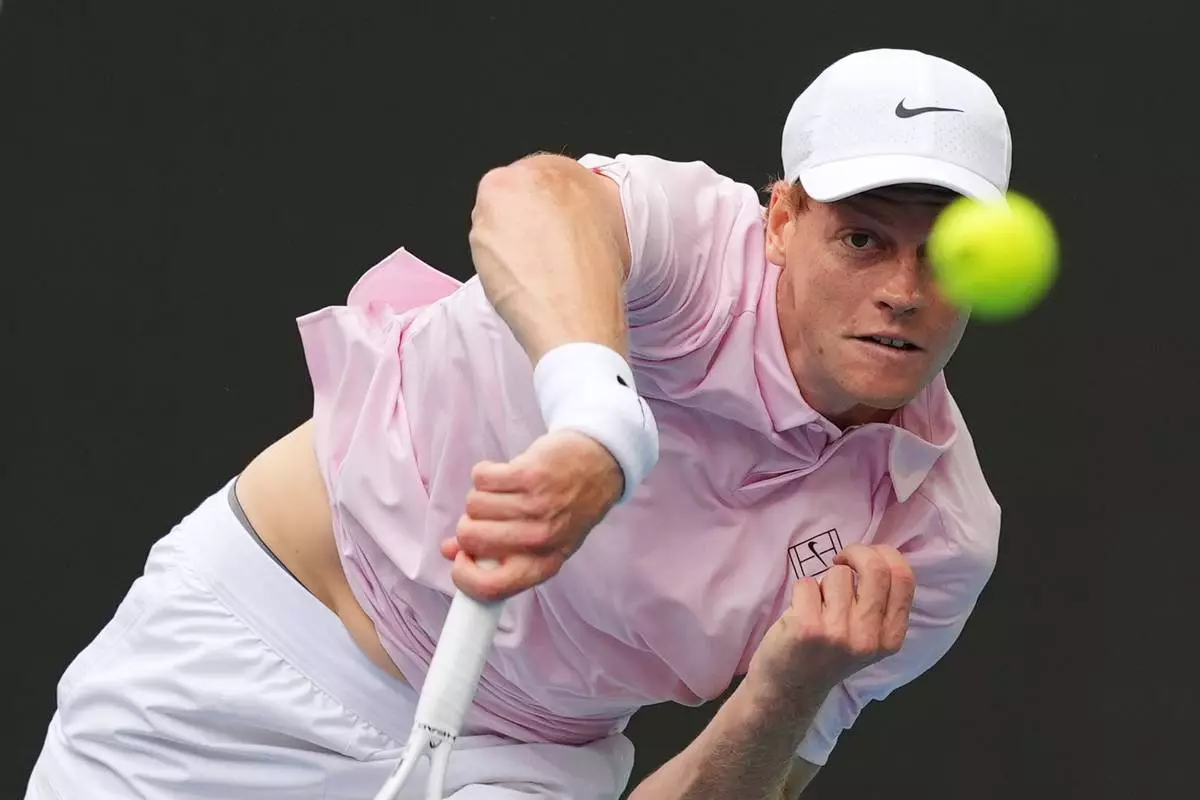 Jannik Sinner of Italy serves against Jiri Lehecka of the Czech Republic in the men's singles final at the Miami Open tennis tournament, Sunday, March 29, 2026, in Miami Gardens, Fla. (AP Photo/Rebecca Blackwell)
