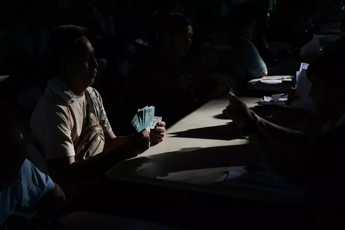 FILE - A jeepney driver poses after receiving cash assistance from the government to help in their livelihood as oil prices continue to rise, Wednesday, March 25, 2026, in Quezon city, Philippines. (AP Photo/Aaron Favila, file)