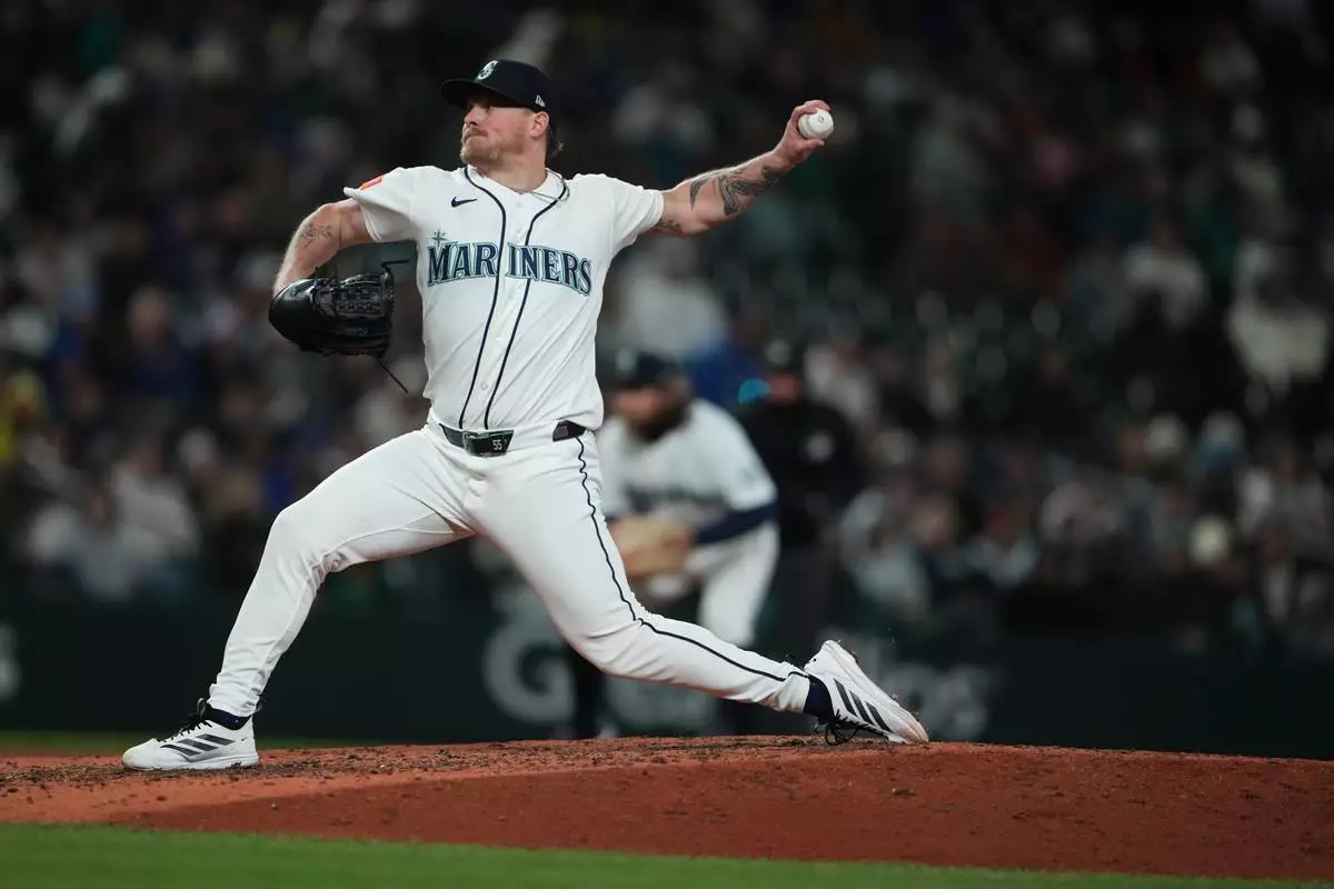 Seattle Mariners relief pitcher Gabe Speier throws against the New York Yankees during the eighth inning of a baseball game, Monday, March 30, 2026, in Seattle. (AP Photo/Lindsey Wasson)