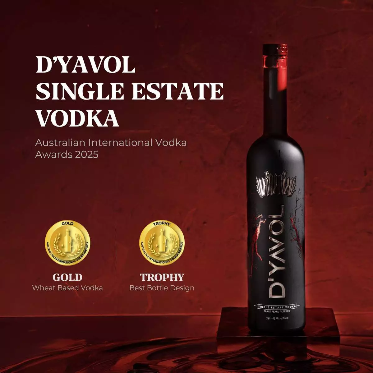 D’YAVOL Single Estate Vodka has been honoured with a Gold Medal and the title of ‘Best Bottle Design’ at Australian International Vodka Awards 2025