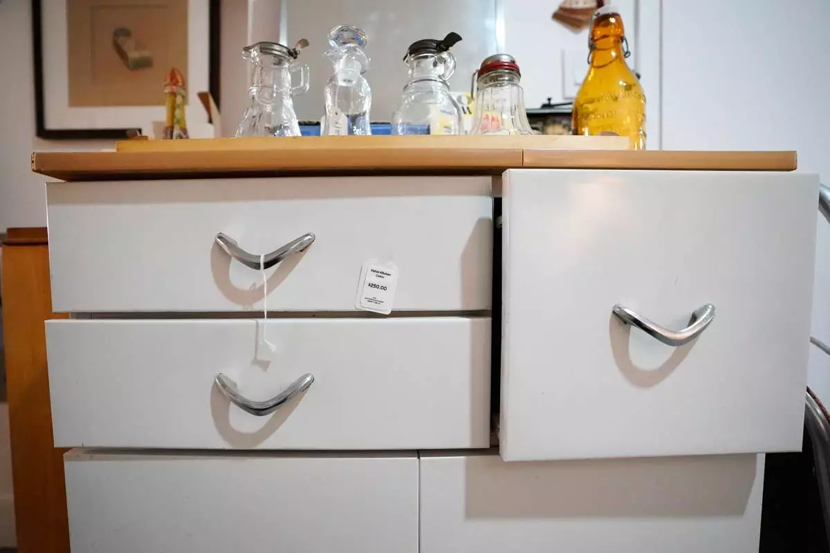 Furniture is for sale at Mothership, a vintage and thrift store, Thursday, March 26, 2026, in New York. (AP Photo/Alyssa Goodman)