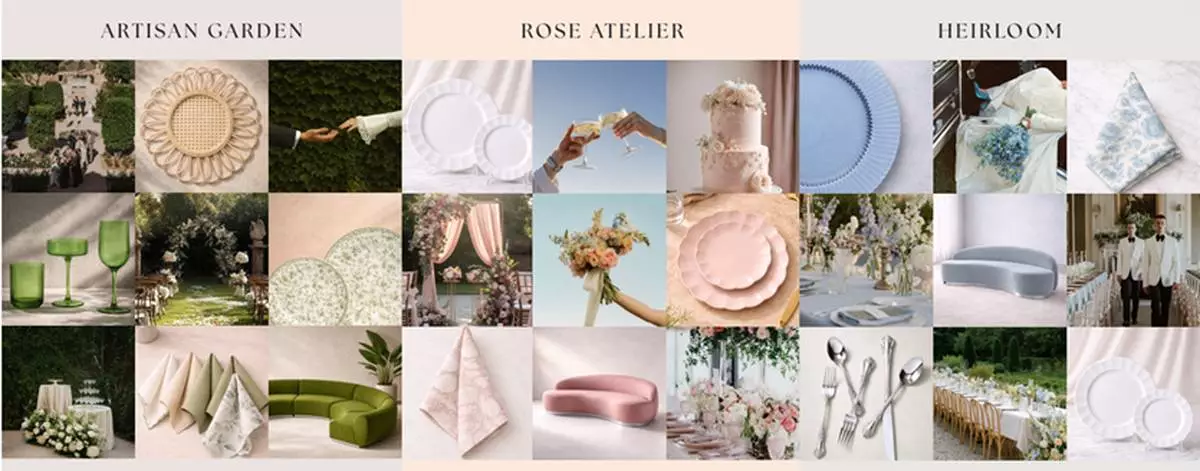 Artisan Garden highlights natural simplicity with layered greens, organic textures, and tactile linens. Heirloom pairs crisp blues and whites with polished silver and subtle prints for a refined, heritage-inspired look. Building on the brand’s signature style, Rose Atelier and Limoncello offer elevated interpretations – Rose Atelier with its blush tones and delicate details, Limoncello with its soft gold accents and warm yellow hues.