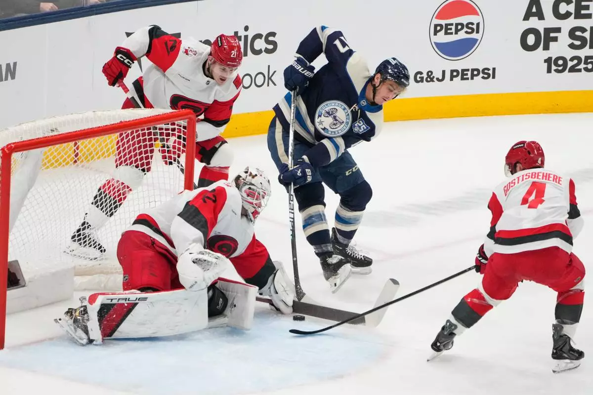 Carolina reaches 100-point mark and stays atop East with 5-2 victory over Blue Jackets