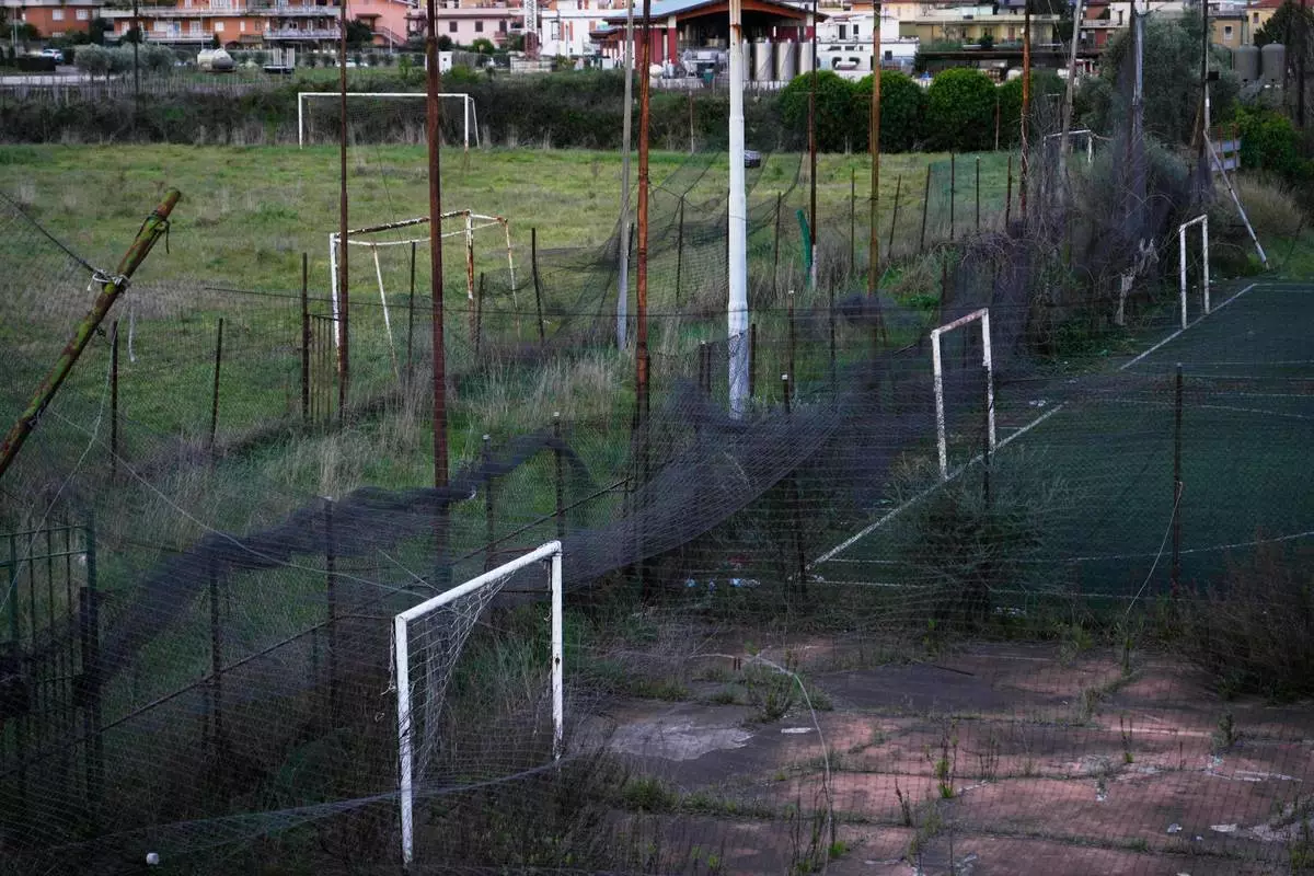 A n abandoned soccer field is pictured in Rome, Wednesday, April 1, 2026. (AP Photo/Gregorio Borgia)