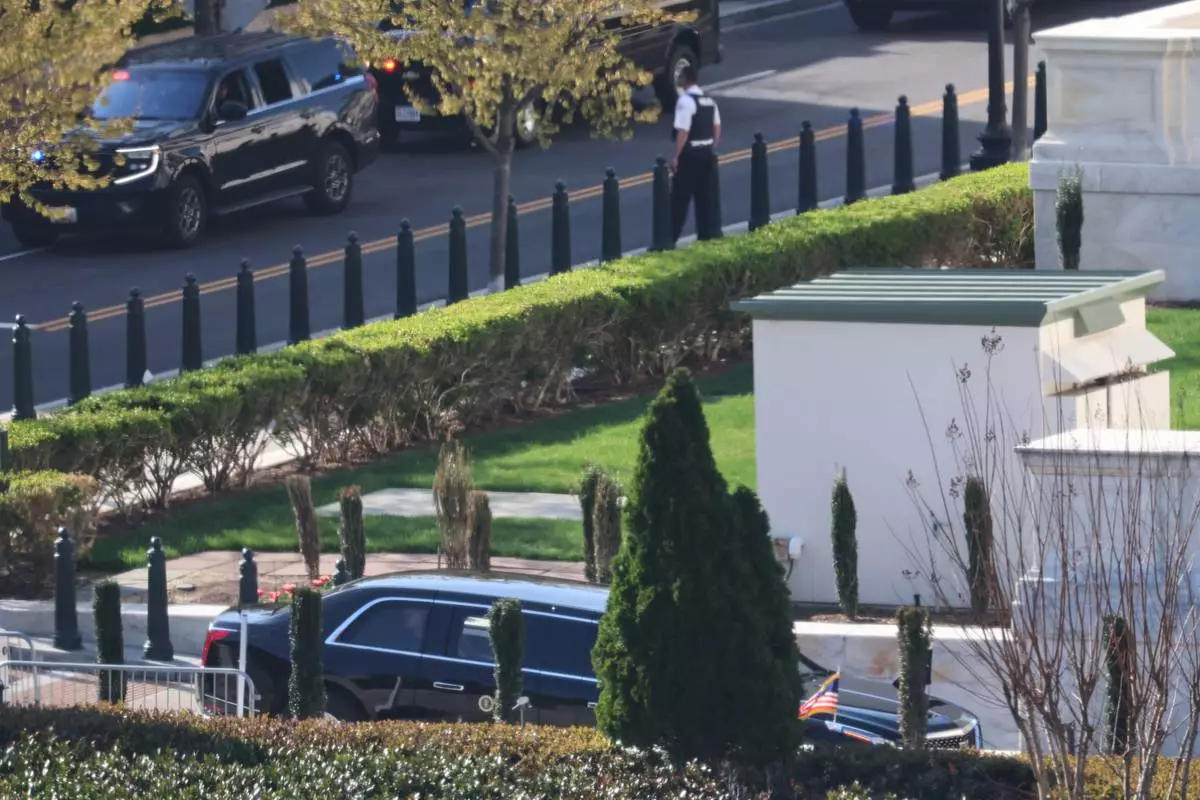 President Donald Trump's motorcade arrives at the U.S. Supreme Court, Wednesday, April 1, 2026, in Washington. (AP Photo/Tom Brenner)