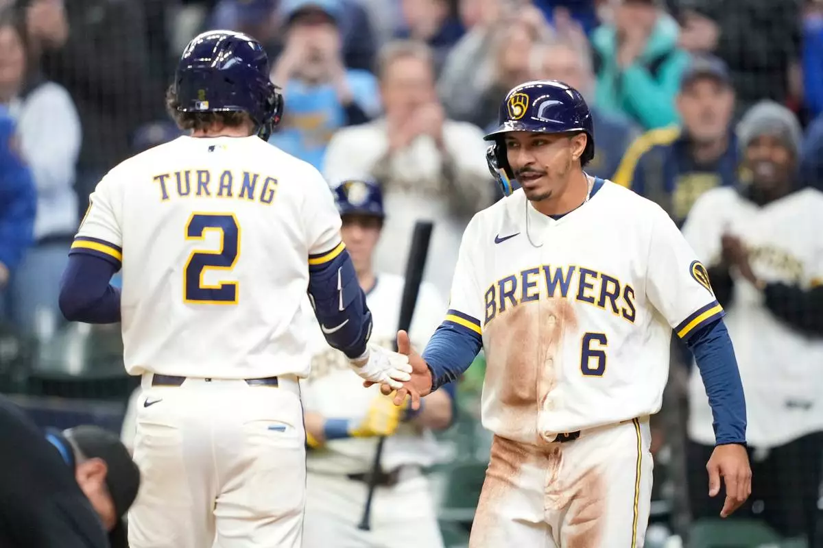 Brice Turang tied it earlier with a two-run homer in the third after the Rays took the lead on Yandy Díaz’s two-run shot in the top half of the inning.