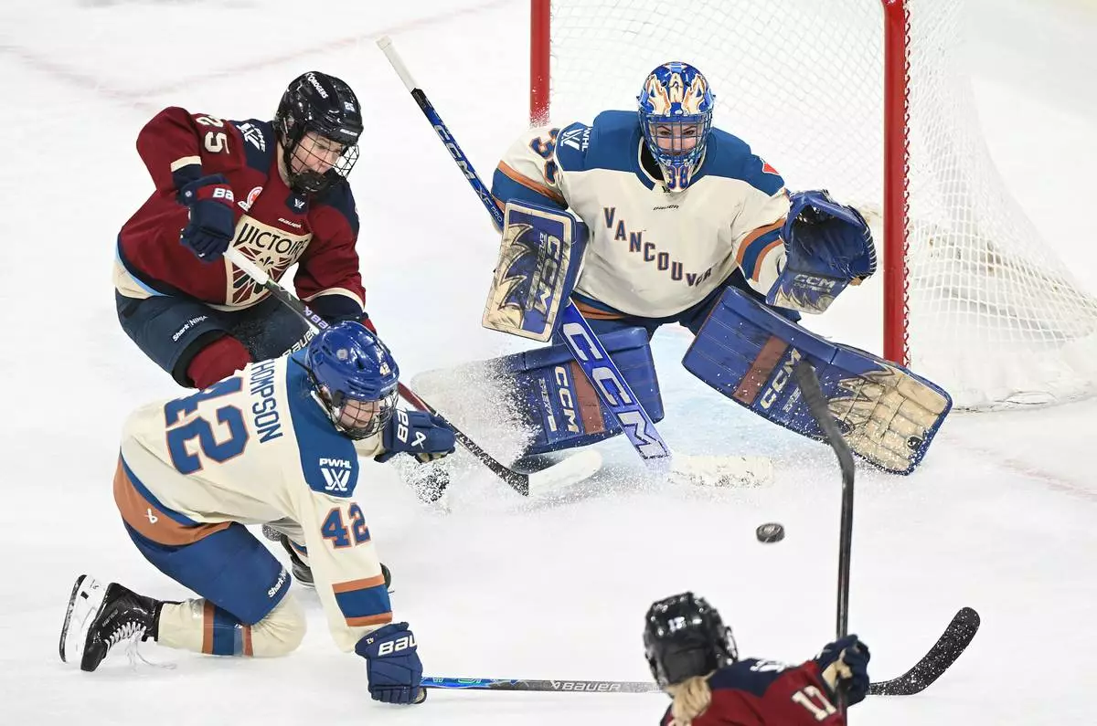 LAVAL, Quebec (AP) — Ann-Renée Desbiens made 18 saves, Hayley Scamurra scored twice and the Montreal Victoire beat the Vancouver Goldeneyes 3-0 on Wednesday night to wrap up a playoff berth in the Professional Women’s Hockey League.