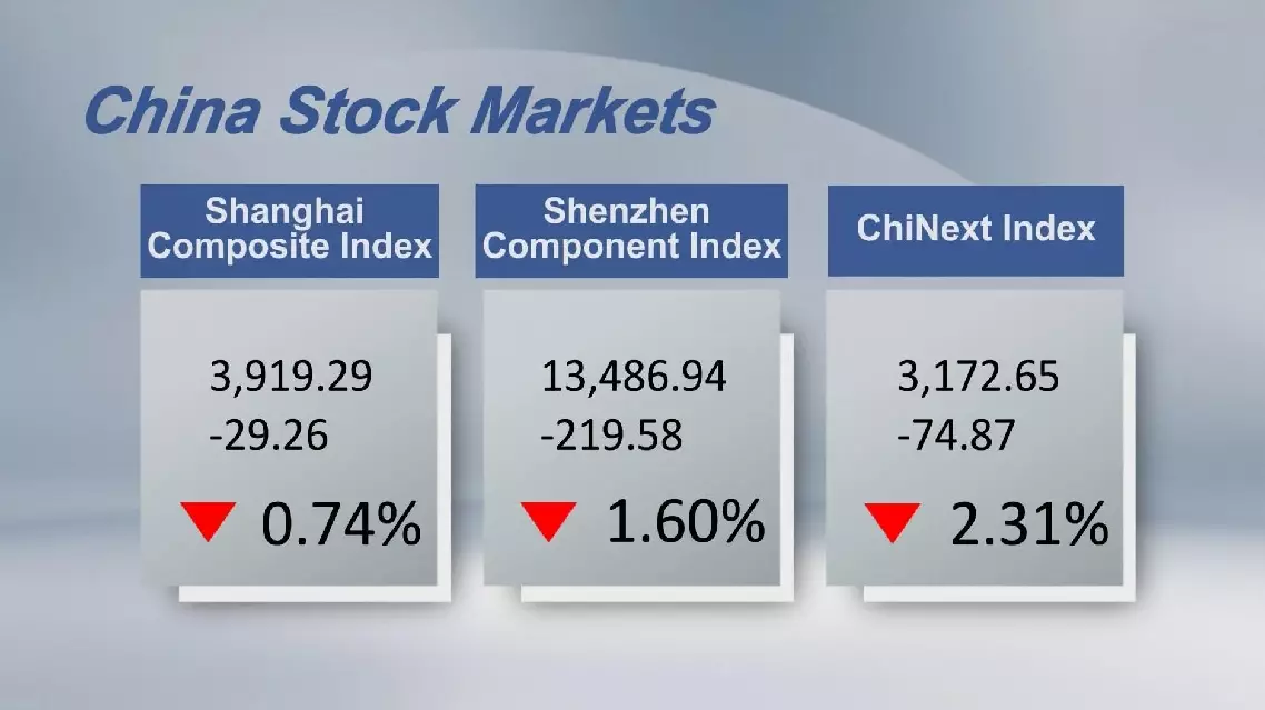 Chinese stocks closed lower on Thursday, with the benchmark Shanghai Composite Index down 0.74 percent to 3,919.29 points.