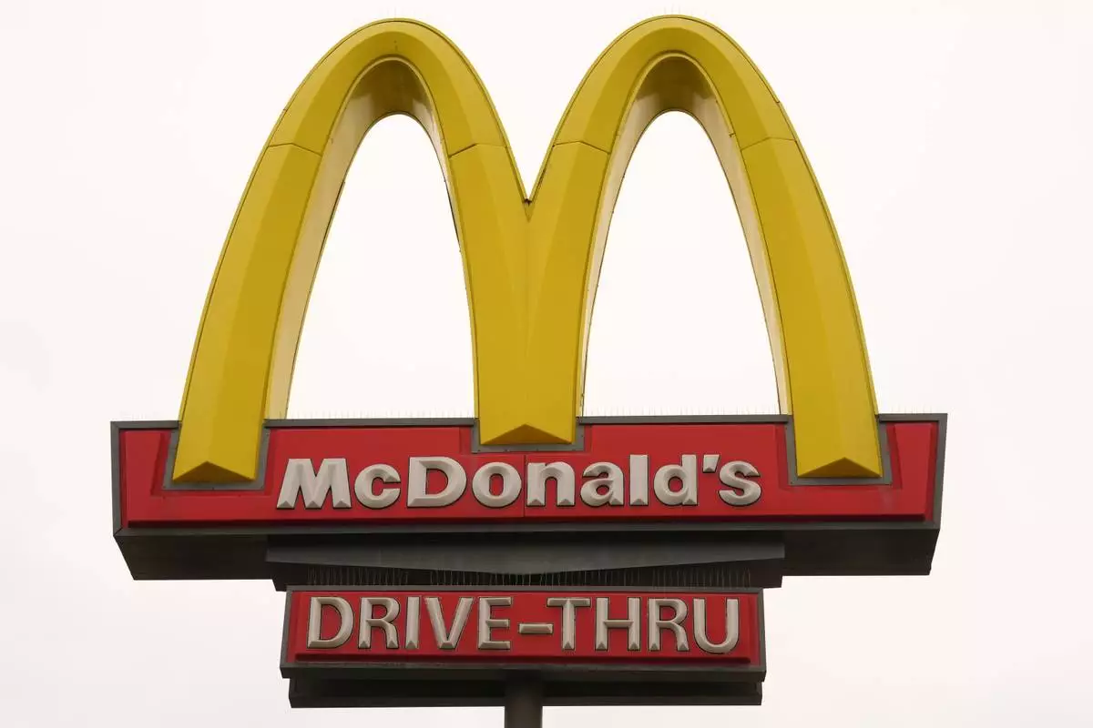 A McDonald's Golden Arch logo is displayed, Tuesday, March 31, 2026, in Los Angeles. (AP Photo/Damian Dovarganes)