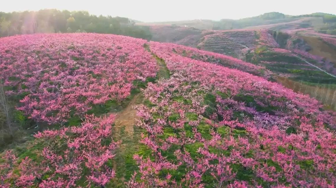 As temperatures rise, the terraced hills of Tongbai County in Nanyang City of central China's Henan Province have transformed into a sea of pink, with 8,000 hectares of peach blossoms reaching their peak bloom, creating a spectacular spring landscape.