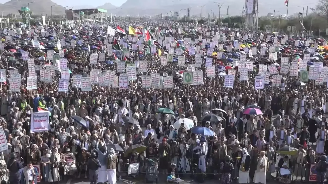 Large-scale rallies were held on Friday in Yemen's capital of Sanaa, and other areas controlled by the Houthi group, with demonstrators expressing solidarity with Iran, Lebanon, and Palestine, while condemning recent American and Israeli strikes targeting Iranian infrastructure.