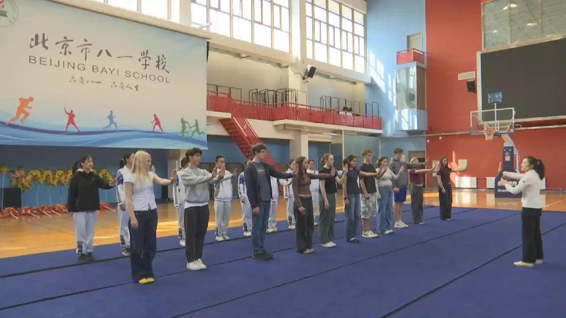 At Beijing Bayi School, American and Chinese students paired up one-on-one to take part in hands-on cultural activities, including Peking opera, dragon dancing, martial arts, shadow puppetry, and pottery. During the dragon dance class, students from both countries lifted the dragon poles together, moving in sync to the rhythm and building teamwork step by step.