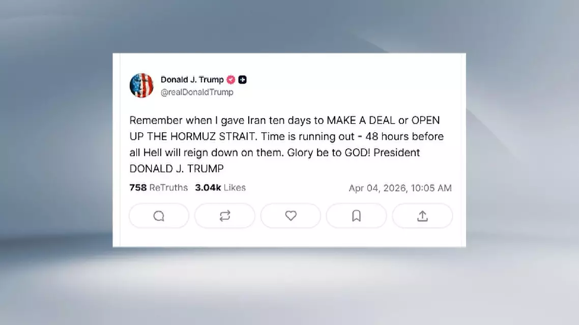 "Remember when I gave Iran ten days to MAKE A DEAL or OPEN UP THE HORMUZ STRAIT," Trump wrote on his Truth Social platform. "Time is running out -- 48 hours before all Hell will reign (sic) down on them," Trump said.
