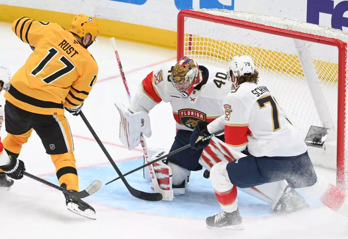 Bryan Rust and Elmer Soderblom also scored for the Penguins. Carter Verhaeghe and Cole Schwindt each scored for the Panthers.