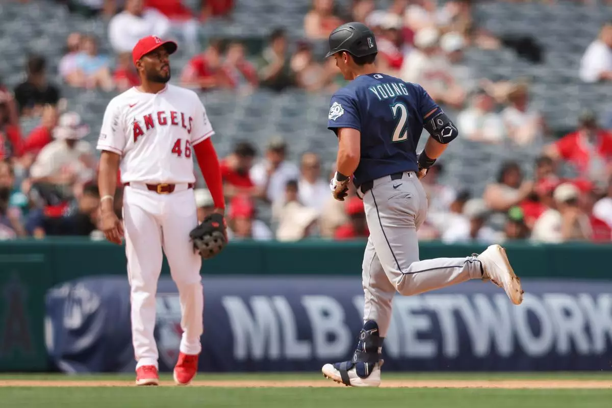 Cole Young hit a three-run homer to give the Mariners a 5-4 lead in the fifth, but Jo Adell and Frazier drove in the runs with singles in the home half.
