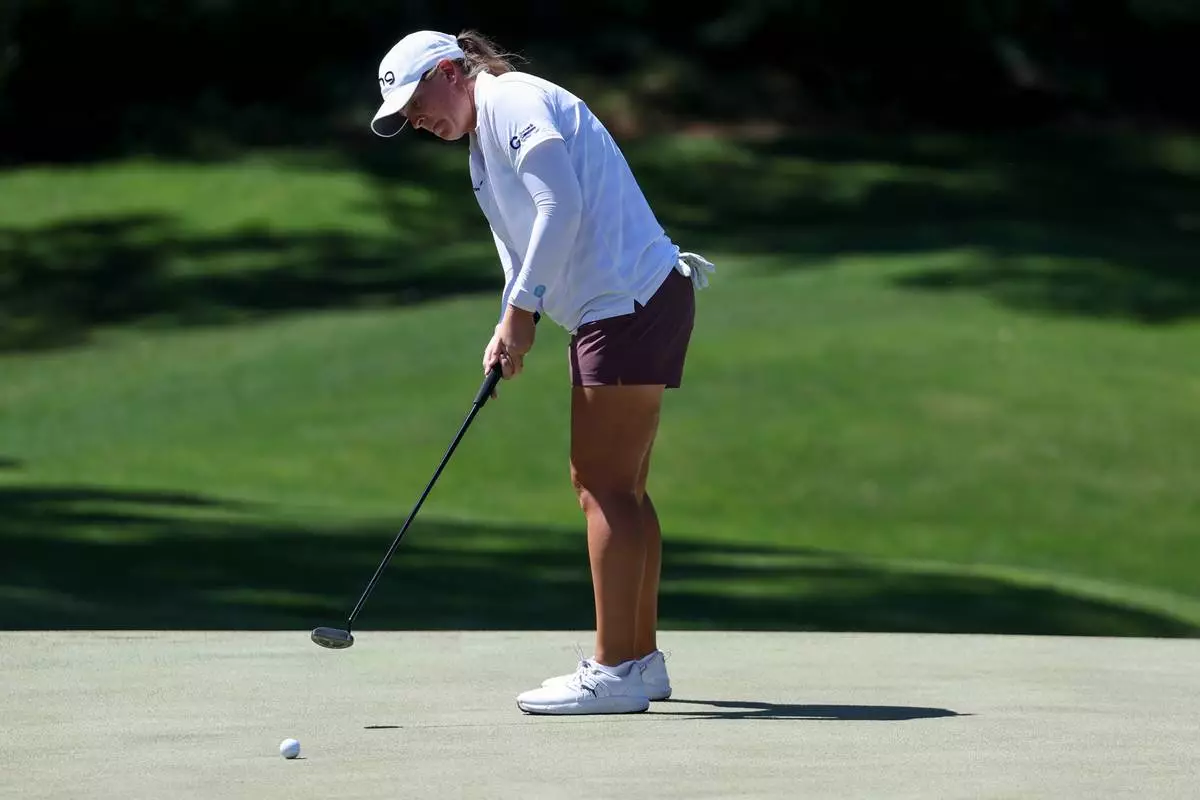 Lauren Coughlin putts on the second green during the final round of the Aramco Championship golf tournament Sunday, April 5, 2026, in North Las Vegas, Nev. (AP Photo/Ian Maule)
