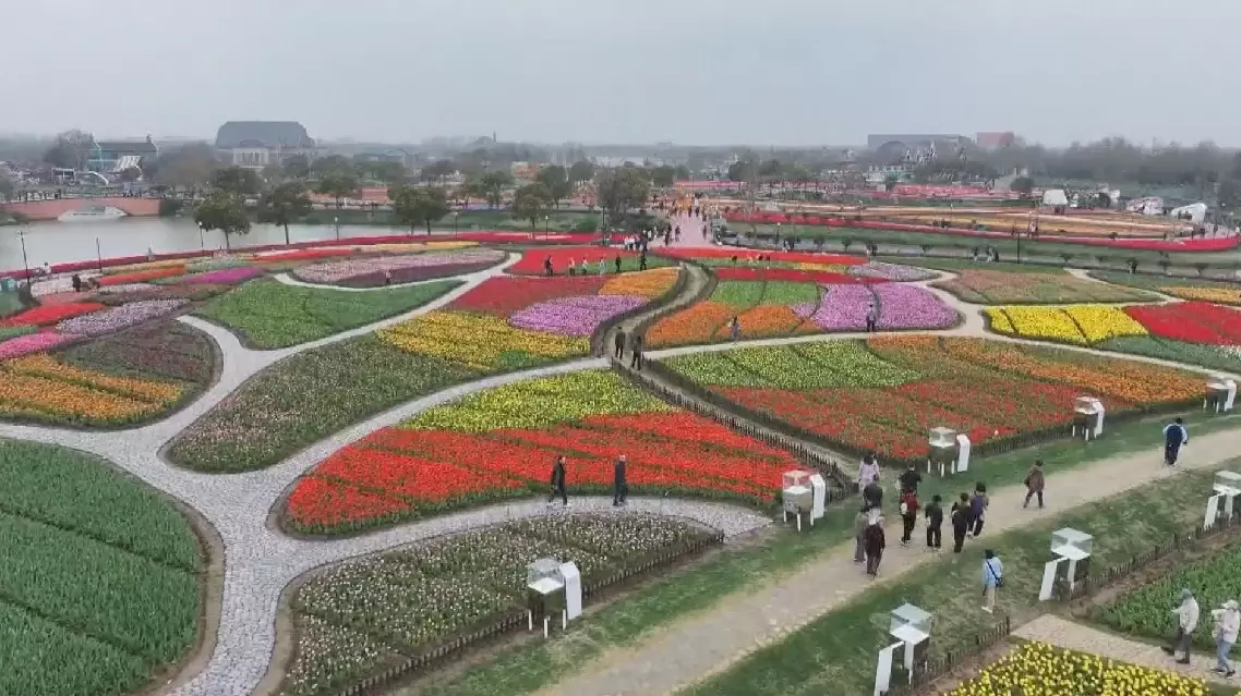 In a park of Yancheng City, east China's Jiangsu Province, vast tulip fields unfurled like an oil painting, creating a picturesque spring scene and enchanting tourists.