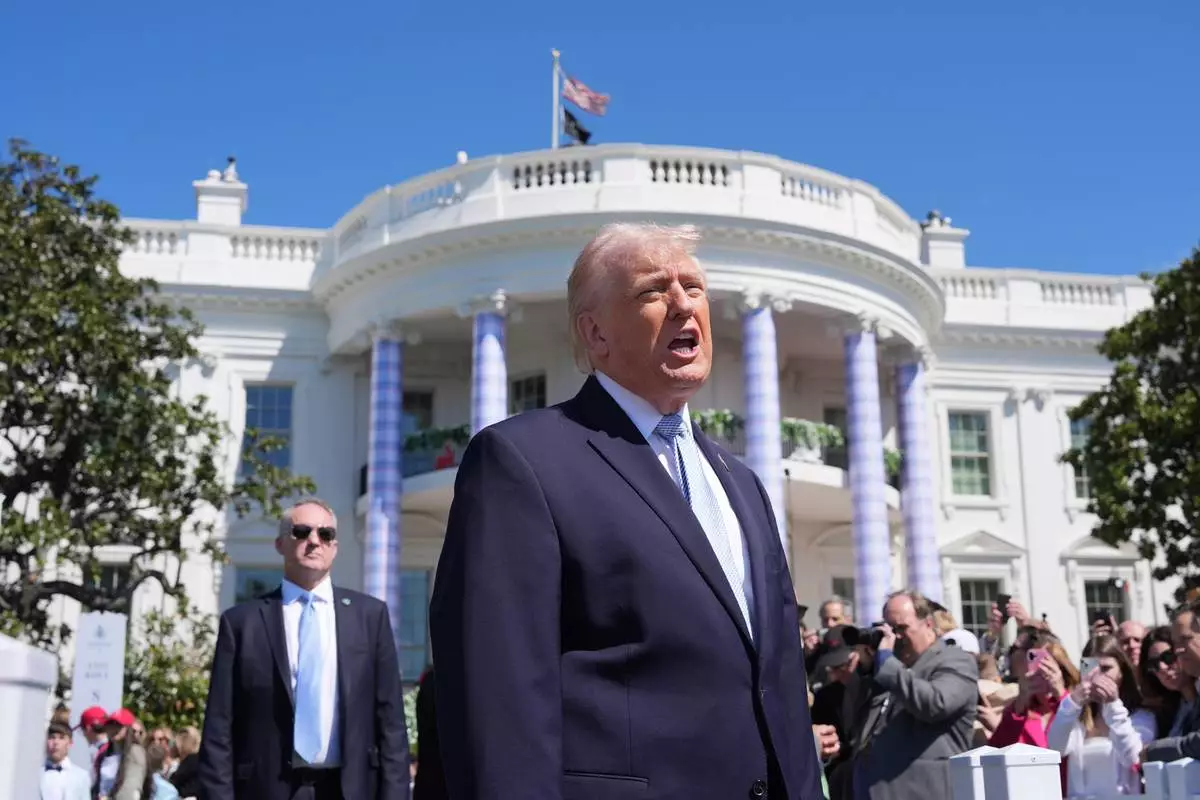 President Donald Trump participates in the White House Easter Egg Roll on the South Lawn of the White House, Monday, April 6, 2026, in Washington. (AP Photo/Alex Brandon)