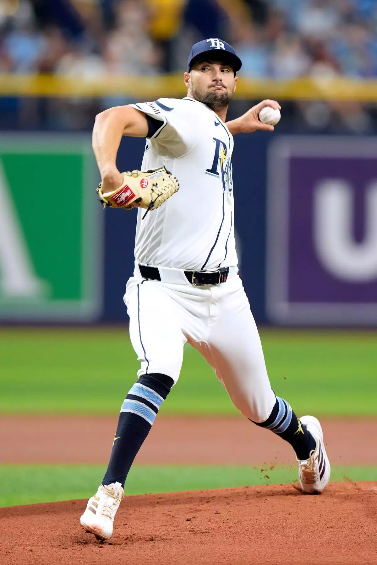 Tampa Bay Rays' Shane McClanahan pitches to the Chicago Cubs during the first inning of a baseball game Monday, April 6, 2026, in St. Petersburg, Fla. (AP Photo/Chris O'Meara)