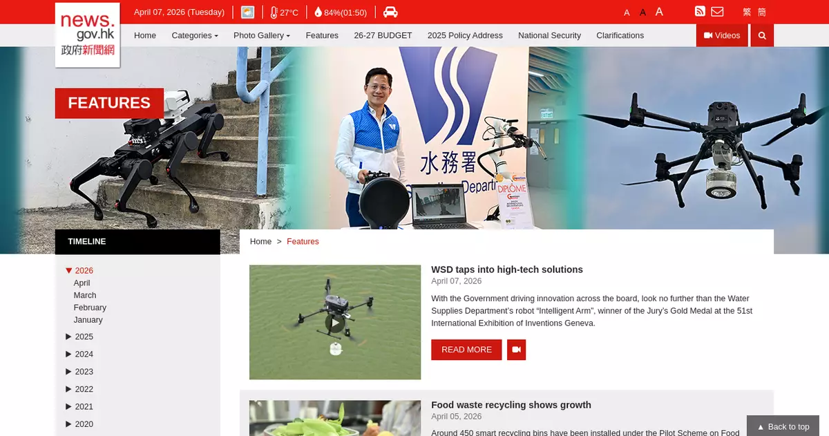 News.gov.hk interviewed engineers from the department, who outlined the functions and advantages of Intelligent Arm, and introduced two other robots: Smart Drone, which is used for water sampling, and the six-legged Smart Inspection Robot Dog, which is deployed in facility patrols.