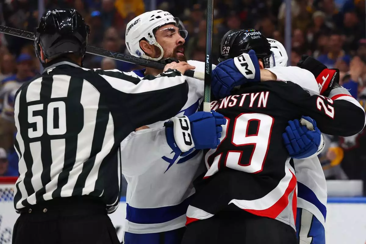 The game on Monday had its chippy moments between two budding division rivals, but nothing matching the ferocious intensity of the teams’ memorable outing a month ago. Buffalo squandered a three-goal lead before rallying from a two-goal deficit to win 8-7 in an outing that featured more than 100 penalty minutes.