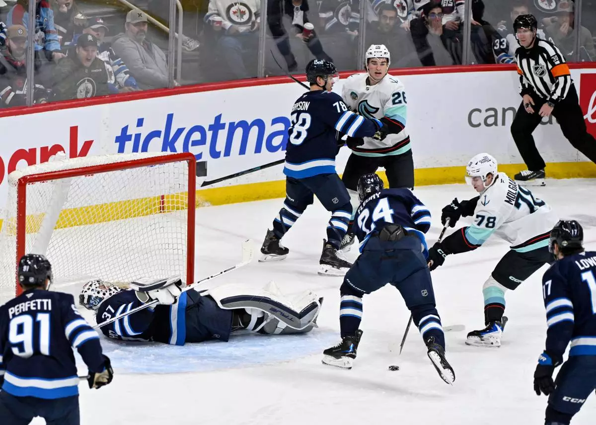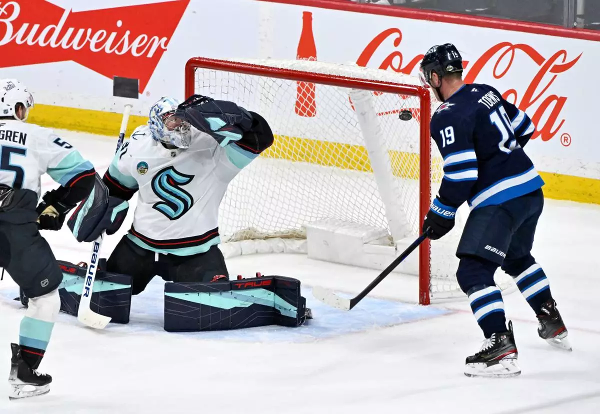 WINNIPEG, Manitoba (AP) — Kyle Connor scored twice, and Jonathan Toews and Gabriel Vilardi had a goal and an assist each to lead the Winnipeg Jets to a 6-2 victory over the Seattle Kraken on Monday night.