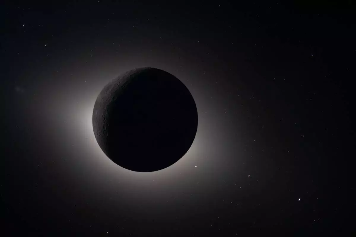 In this image provided by NASA, The Artemis II crew captured from lunar orbit, the Moon eclipses the Sun on Monday, April 6, 2026. (NASA via AP)