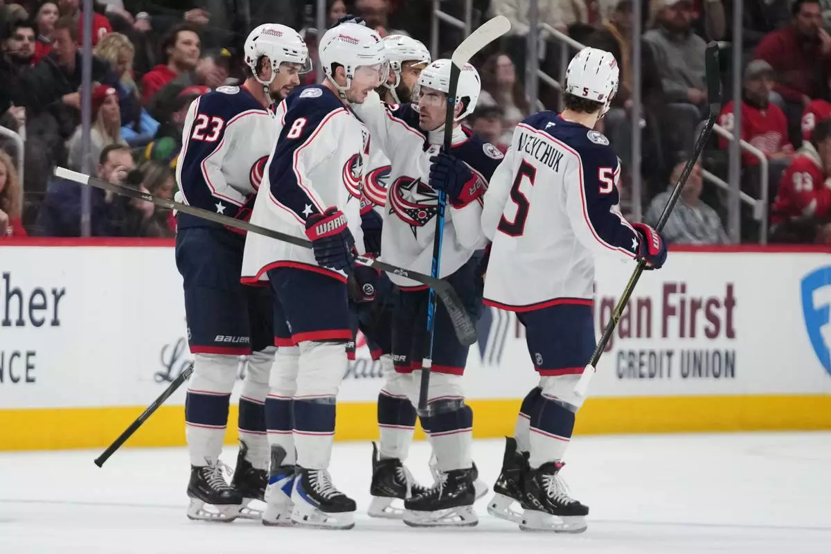 DETROIT (AP) — Zach Werenski scored in the shootout to lead the Columbus Blue Jackets over the Detroit Red Wings 4-3 on Tuesday night, ending a six-game skid.