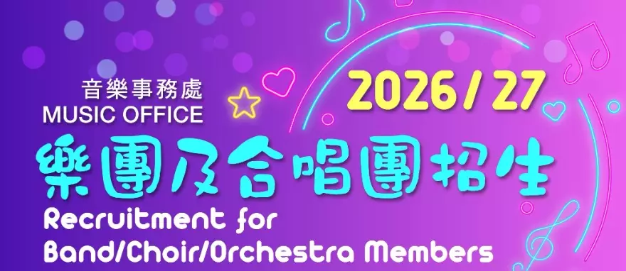 The Music Office of the Leisure and Cultural Services Department is recruiting new members for its 18 bands and orchestras as well as two choirs. Training for 2026-27 will be held from this September to May 2027. The deadline for applications is May 4.
