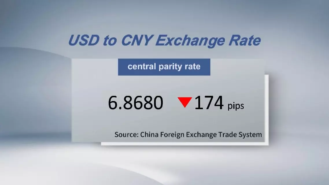 The central parity rate of the Chinese currency renminbi, or the yuan, strengthened 174 pips to 6.8680 against the U.S. dollar Wednesday, according to the China Foreign Exchange Trade System.