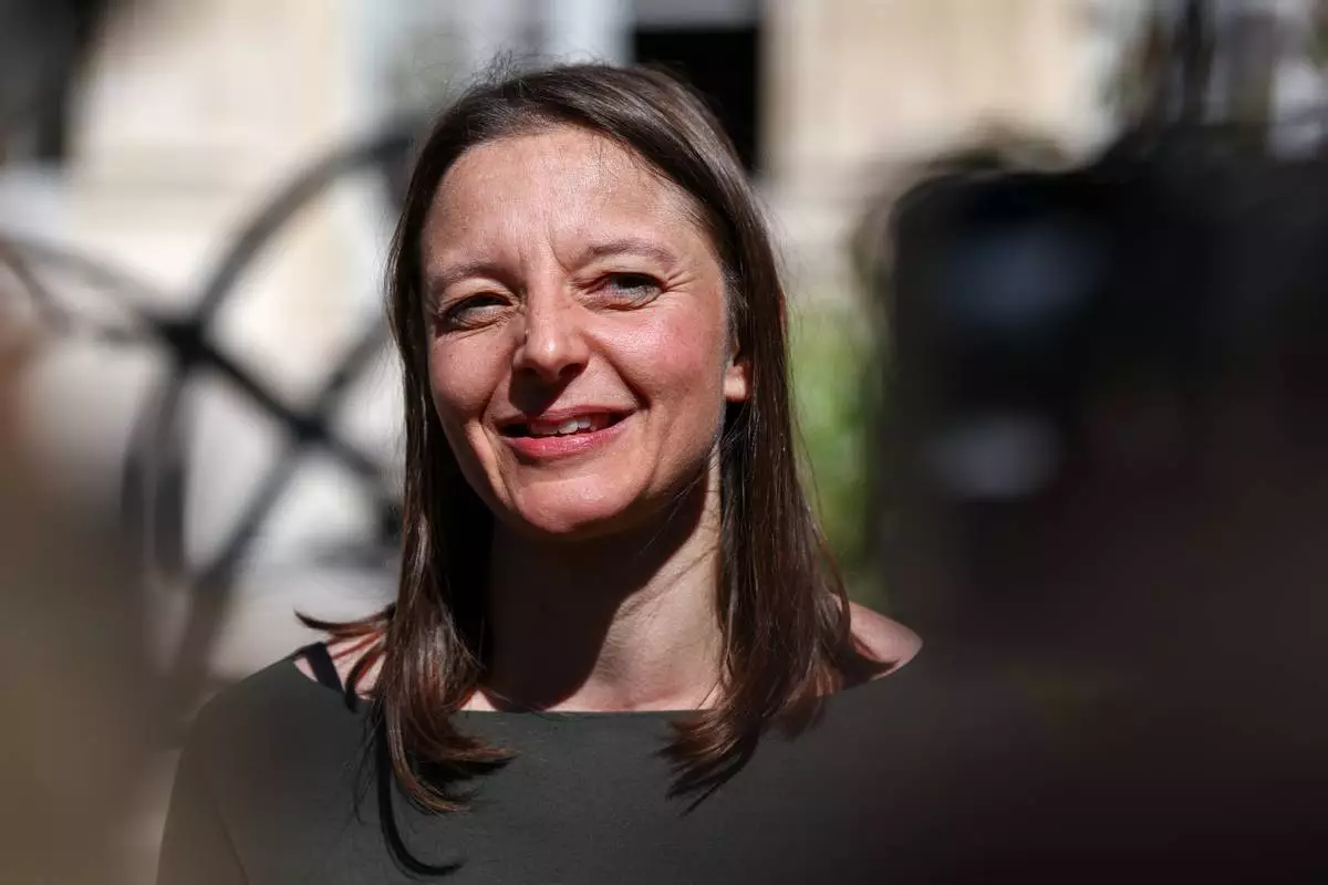 Cecile Kohler, a French national who were freed by Iran with Jacques Paris after three and a half years in detention, speaks to media at the Elysee Palace as they are hosted by French President Emmanuel Macron, in Paris, France, April 8, 2026. (Tom Nicholson/Pool Photo via AP)