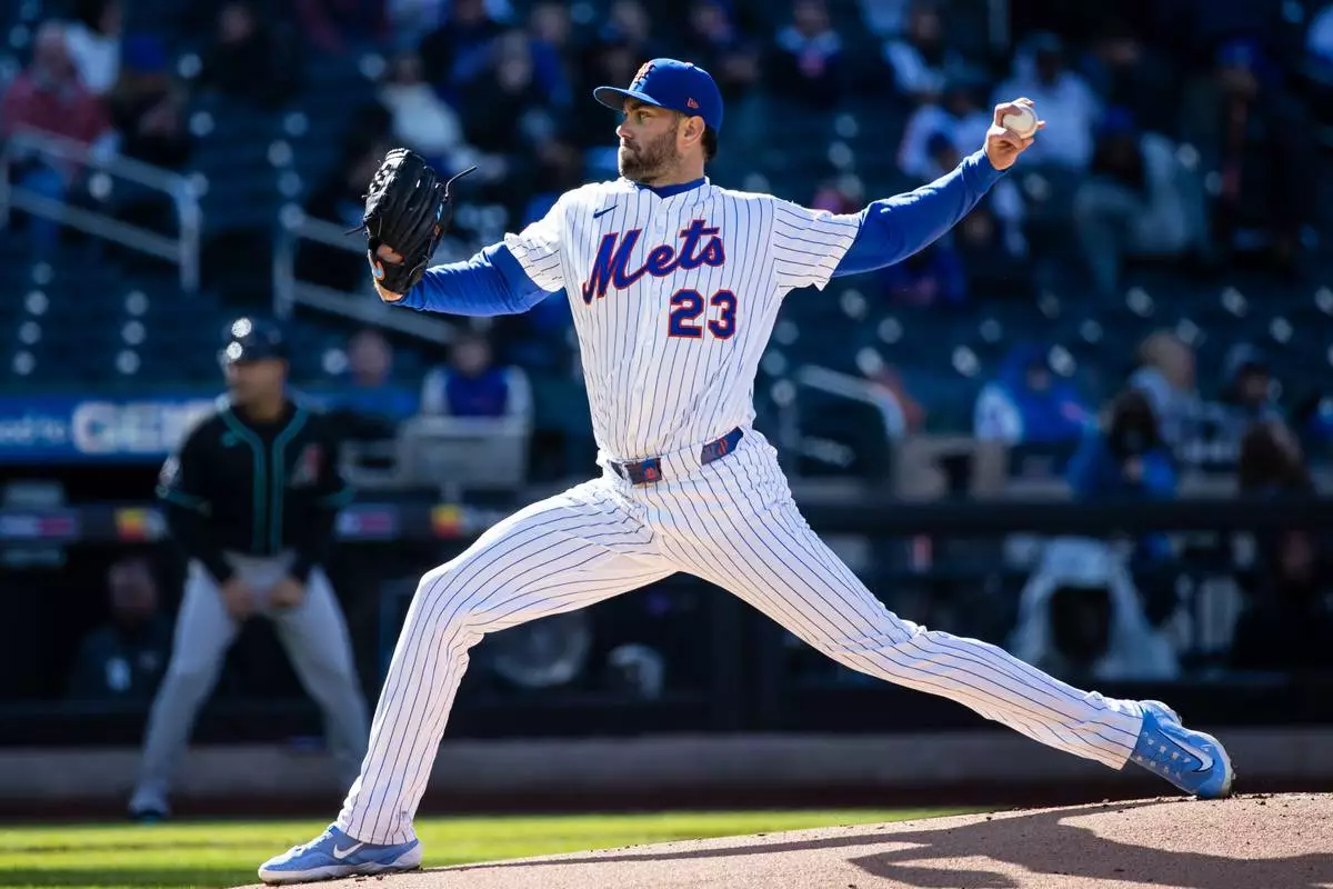 New York Mets pitcher David Peterson (23) pitches during the first inning of a baseball game against the Arizona Diamondbacks, Wednesday, April 8, 2026, in New York. (AP Photo/Angelina Katsanis)