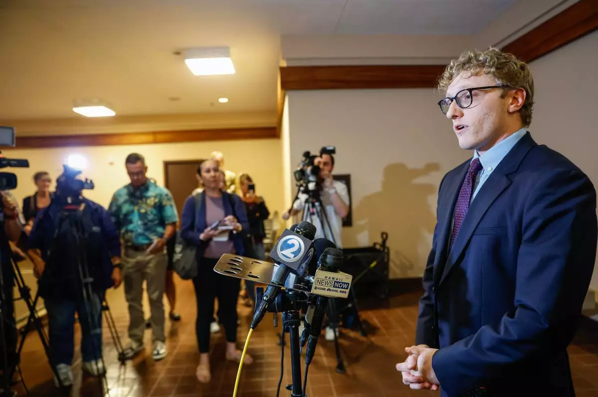 Deputy prosecutor Joel Garner speaks to media after the verdict in Gerhardt Konig's trial, Wednesday, April 8, 2026, in Honolulu. (Jamm Aquino/Honolulu Star-Advertiser via AP, Pool)
