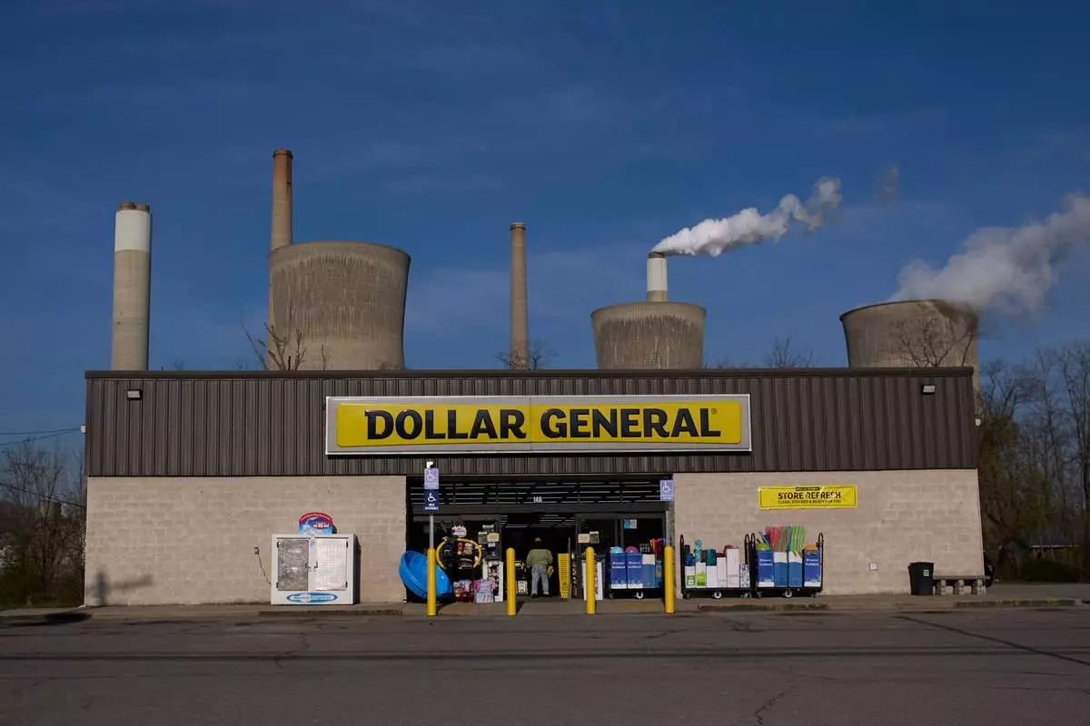 American Electric Power's John Amos coal-fired plant in Winfield, W.Va., stands behind a Dollar General store, Sunday, March 22, 2026, in Poca, W.Va. (AP Photo/Carolyn Kaster)