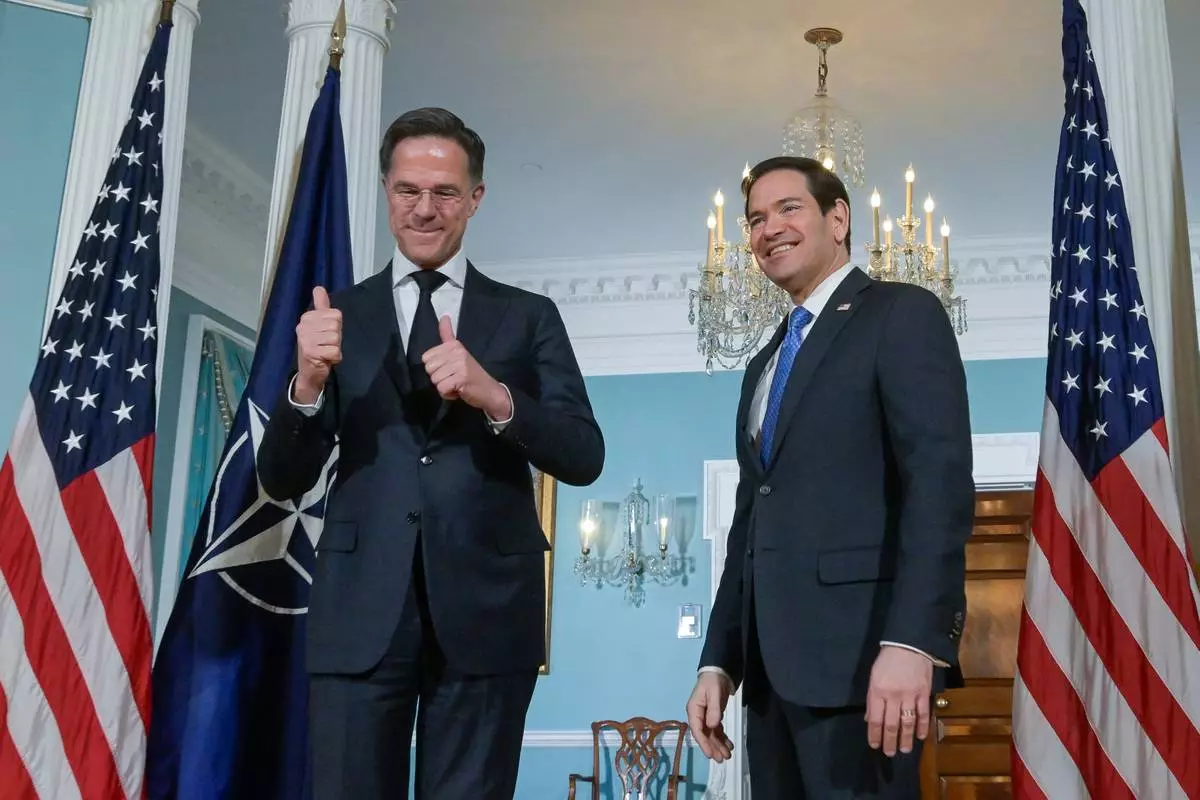 In a speech Thursday on America's role in NATO, Rutte said “allow me here to applaud President Trump for his bold leadership and vision.” Rutte chided some allies for being "a bit slow, to say the least,” to help with Iran.