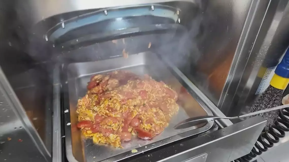 With two AI cooking robots and two cooks on duty in the kitchen, the canteen is able to handle peak meal times each day, creating enough food to feed more than 200 diners in this buffet-style environment.
