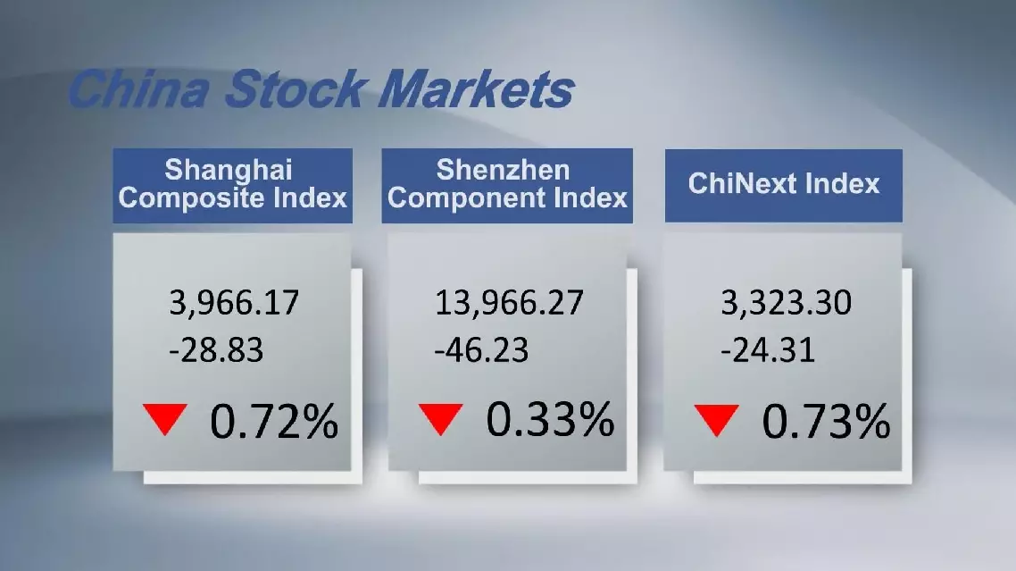 Chinese stocks closed lower on Thursday, with the benchmark Shanghai Composite Index down 0.72 percent to 3,966.17 points.