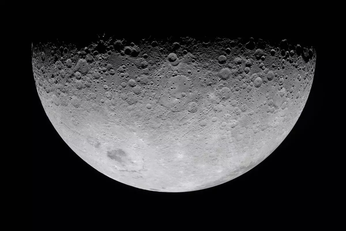 In this image provided by NASA, the Artemis II crew photographed the Moon's crater on Monday, April 6, 2026. (NASA via AP)