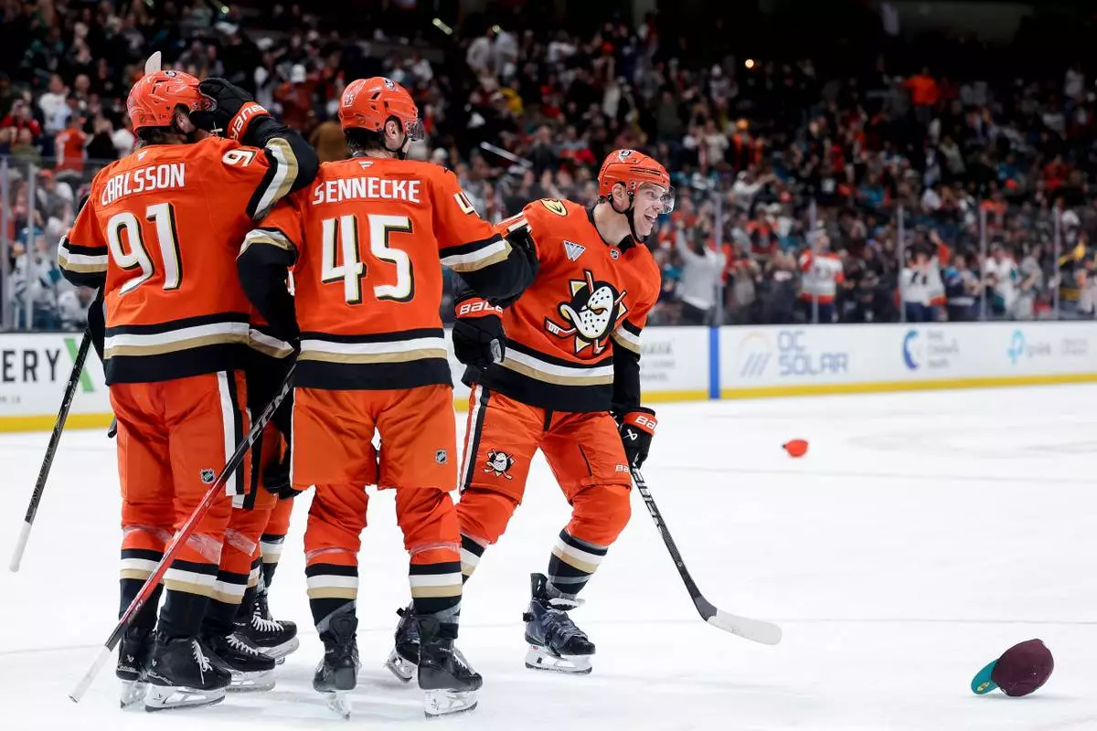 But Carlson has been a steady contributor on both ends of the ice throughout his NHL career, and he had been a major factor for his new team in Anaheim even before his third goal sealed a big win. His shot sent a shower of hats onto the Honda Center ice with 5:57 to play in celebration of only the fourth hat trick by a defenseman in Ducks history, and the first since 2018.