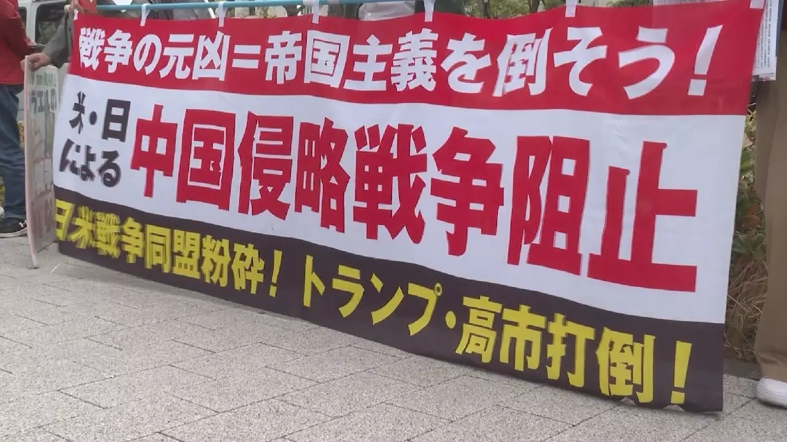 "What Prime Minister Sanae Takaichi is doing toward war is constitutional amendment for the worse. Additionally, she's pushing for military expansion, public security, and legislation. There are the three pillars that she's trying to advance. Japan invaded China 80 years ago and it has shown no remorse or offered no apology for it. Those currently in power today are also this type of people. We believe that those actions are completely over the line. We act with a sense of remorse and apology, but Takaichi is different, she acts just the opposition way," a protester said.