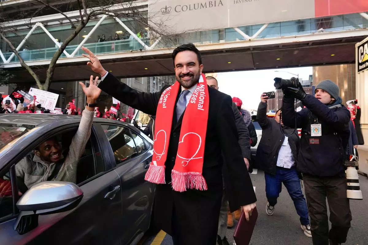 FILE - New York Mayor Zohran Mamdani arrives as nurses strike outside New York-Presbyterian Hospital, Jan. 12, 2026, in New York. (AP Photo/Yuki Iwamura, File)