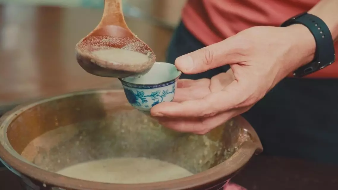 From breakfast tables to community gatherings, the tea-based gruel is prepared by grinding tea leaves, sesame seeds, and peanuts into a fine powder before hot water is added, producing flavors that range from savory to sweet or spicy.