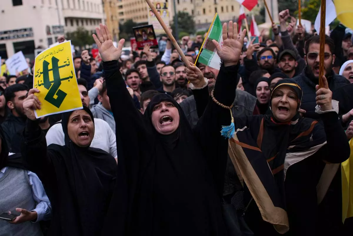 Dozens of supporters of the Iran-backed group protested outside of the Lebanese prime minister's office in central Beirut. They see the scheduled direct talks as a surrender to Israel, which says its troops will stay in the country indefinitely.
