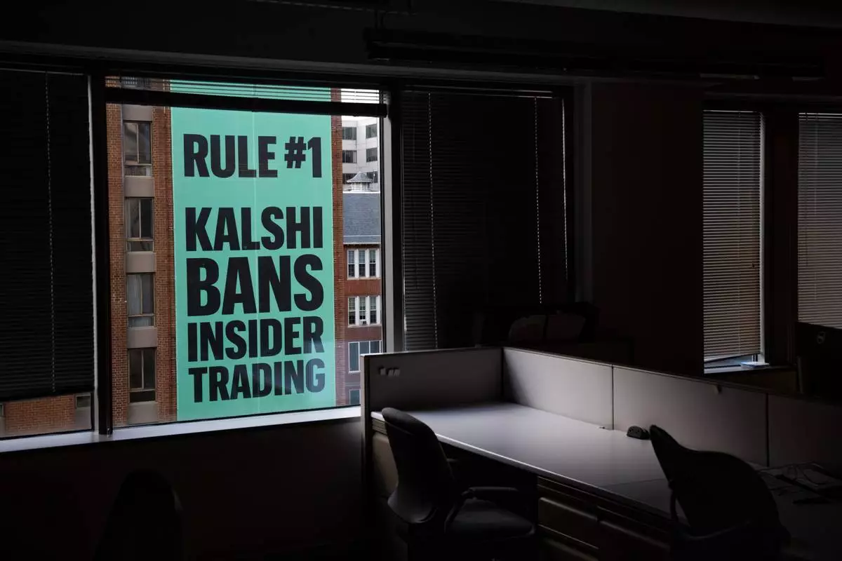 FILE - A banner for the prediction market platform Kalshi hangs from a building in Washington, Wednesday, April 1, 2026. (AP Photo/Allison Robbert, File)
