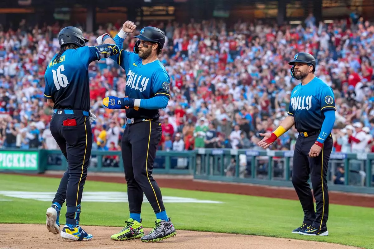 The Phillies got the instant offense out of the top of the order they've lacked most of the season. Turner singled, Kyle Schwarber walked and Bryce Harper lined an RBI double for a 1-0 lead.