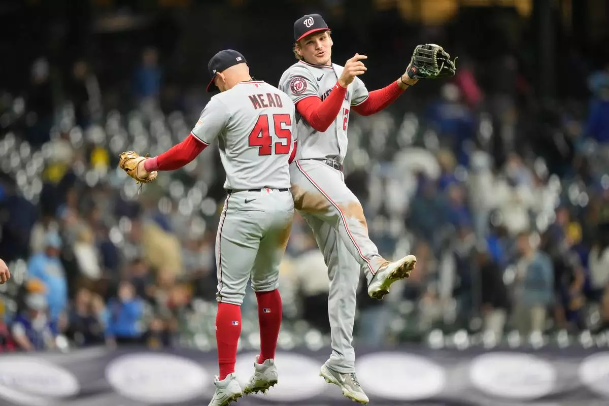 A Lebanese civil defense worker looks upward near the site of a building destroyed in an Israeli airstrike a day earlier in central Beirut, Lebanon, Thursday, April 9, 2026. (AP Photo/Hassan Ammar)