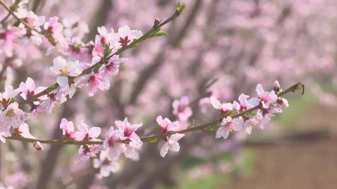 In Dahuashan Town, vast stretches of peach blossoms are in full bloom.