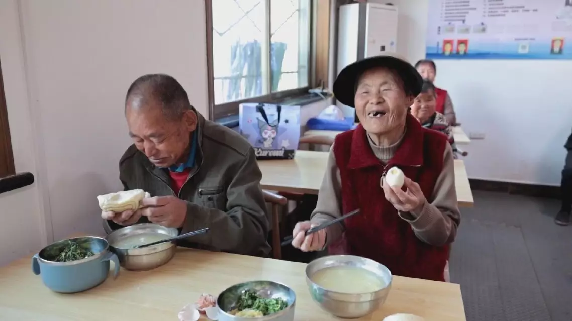 A similar canteen has also been established in Shizhu Village, Tongchuan City, adopting a model where elderly villagers help care for one another to ensure everyone can have meals on time.
