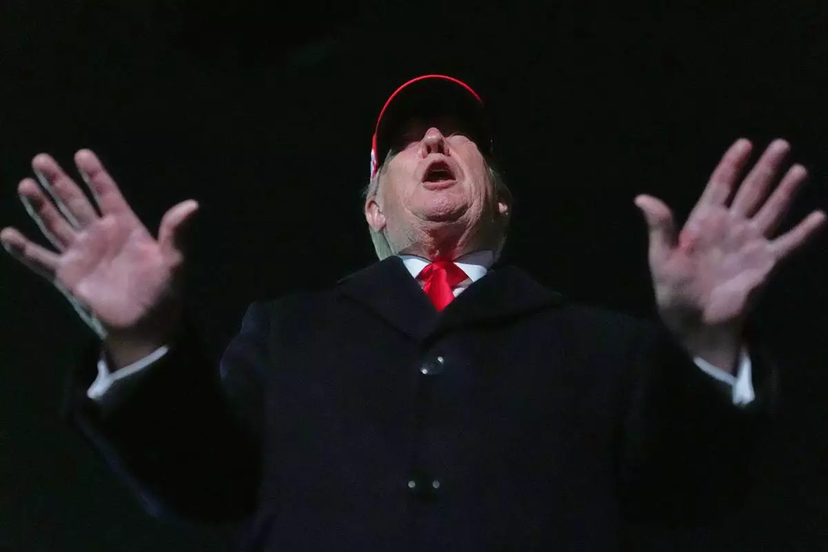 President Donald Trump speaks with reporters at Joint Base Andrews, Md., Sunday, April 12, 2026, after he returned from Miami. (AP Photo/Julia Demaree Nikhinson)